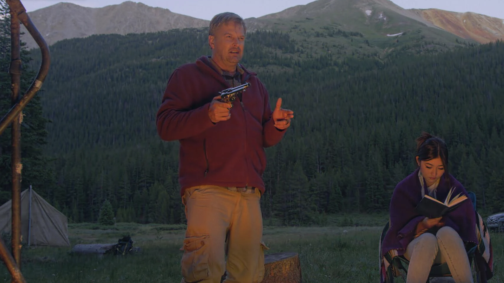 A teenage girl and her step-father set up camp in the rocky mountains. He hope to recapture the magic of the trips they took when she was little, but she has seemingly outgrown the tradition. His spirit is further deflated after she confesses she will be going to college in China, near her real dad. At the height of the argument, a curious grizzly bear prowls their secluded campsite, illuminating their unresolved pasts and unsettled futures.